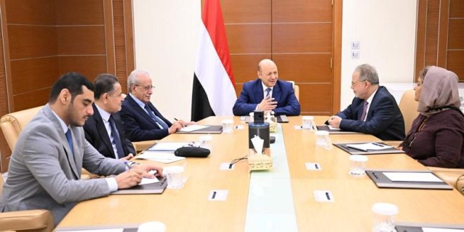 اجتمع فخامة الرئيس الدكتور رشاد محمد العليمي، رئيس مجلس القيادة الرئاسي، اليوم الاثنين، برئيس هيئة التشاور والمصالحة محمد الغيثي، ونوابه عبدالملك المخلافي، صخر الوجيه، جميلة علي رجاء، وأكرم العامري.