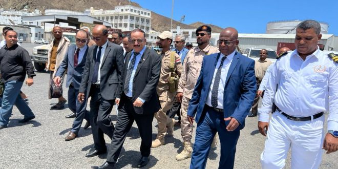 تفقد معالي وزير النقل الدكتور عبدالسلام صالح حُميد،صباح اليوم، سير وحركة مناولة وتفريغ السفن والخدمات المقدمة للسفن بميناء المكلا في إطار جولته التفقدية لحركة النشاط مؤسسة موانئ البحر العربي.