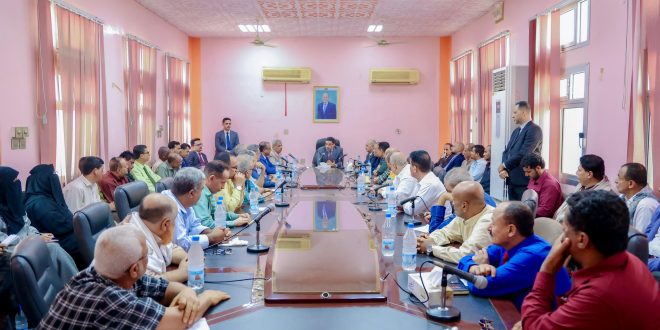 وتدارس الاجتماع، الإجراءات المتخذة لتعزيز الوضع الأمني، وكذا أوضاع مناطق التماس والجبهات مع مليشيا الحوثي الإرهابية، إضافة الى رؤية السلطة المحلية والتنفيذية للتعامل مع مختلف التحديات، وبينها مشاكل النازحين واللاجئين والتهريب، والمتطلبات في الجوانب الخدمية بما يتوازى مع الاحتياجات القائمة.