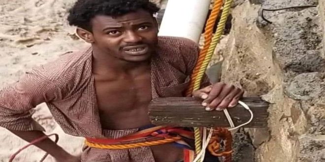 وظهر الشاب يحي 20 عاما في فيديو مصور وهو يربط الحبال حول خصره ويقوم بمهمة الإنقاذ البطولية.