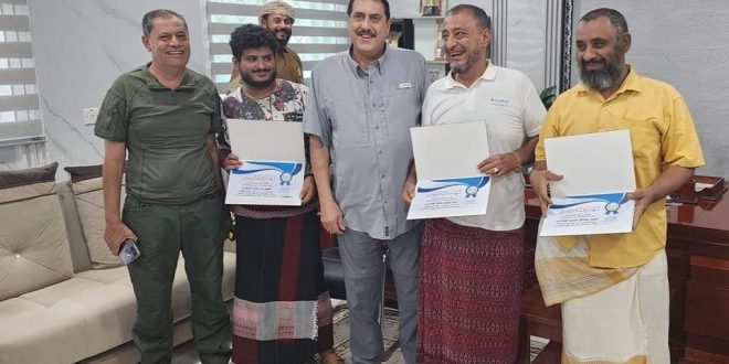 وقدم اللواء الشعيبي شهادات التكريم للمواطنين أحمد محمد سالم الصلاحي ومحسن بن حامد العبادي ومحمد عبدالله حسين الصلاحي بحضور مدير قسم شرطة الشيخ عثمان العقيد عبدوه نايف.