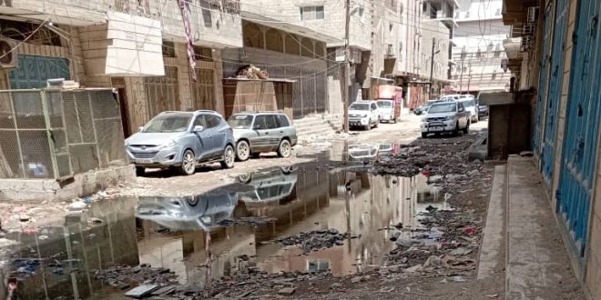 وتحولت بعض الشوارع والأحياء والحارات في المدينة إلى بحيرات ومستنقعات ومياة راكدة لمخلفات مجاري الصرف الصحي في ظل صمت مطبق وفشل وعجز الجهات المسؤولة عن حل المشكلة.