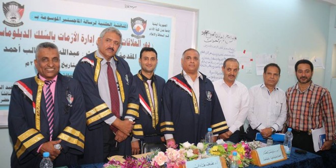 نال اليوم الباحث عبدالله هزاع المجيدي درجة الماجستير من قسم الاعلام بجامعة عدن عن رسالته الموسومة بدور العلاقات العامة في ادارة الازمات في السلك الدبلوماسي وذلك بدرجة امتياز.