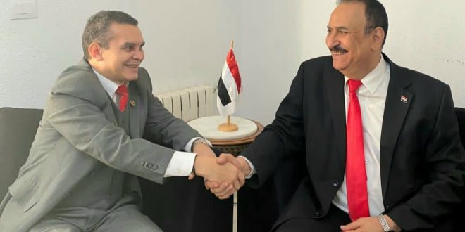استقبل سعادة سفير اليمن عميد السلك الدبلوماسي في تونس، عبدالناصر باحبيب في مكتبة بمبنى السفارة،اليوم، سعادة سفير جمهورية فنزويلا البوليفارية الجديد المعتمد لدى تونس السيد رينالدو بوليفار.