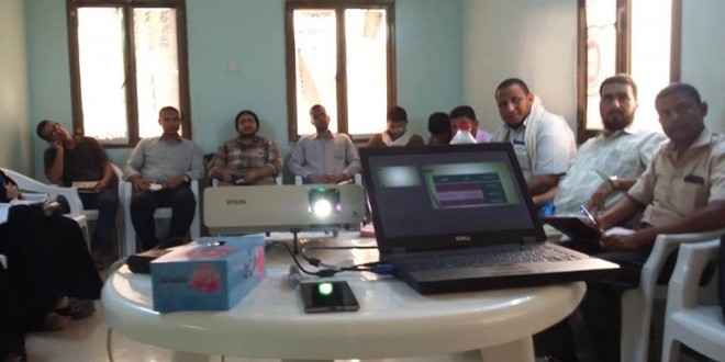 وتلقى المشاركون في اليوم الاول للدورة شرحا نظريا وتطبيقا عمليا لمحور الاعلام والتسويق والتسويق الاجتماعي على يد المدرب منيف يفوز الخبير في مجال الاعلام والتسويق بفريق قدرات للتدريب والصندوق الاجتماعي للتنمية.
