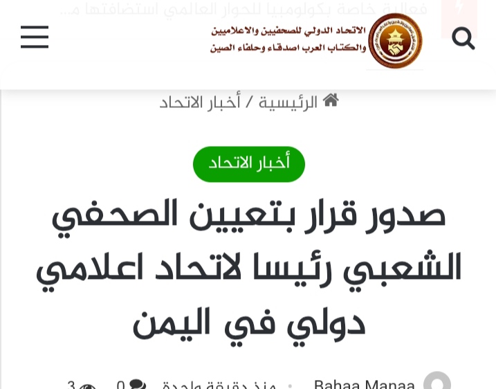 وشغل الزميل الصحفي باسم فضل الشعبي، عضوية الاتحاد الدولي للصحفيين والإعلاميين والكتاب العرب حلفاء وأصدقاء الصين، منذ العام 2018، وقدم خلال الفترة الماضية إنتاجا فكريا وإعلاميا مميزا في تعزيز العلاقات العربية واليمنية مع جمهورية الصين الشعبية، ويأتي تعيينه في هذا الموقع المهم بهدف توطيد العلاقات بين الصحفيين والإعلاميين والكتاب في اليمن مع الجانب الصيني، لما فيه مصلحة بلديهما.