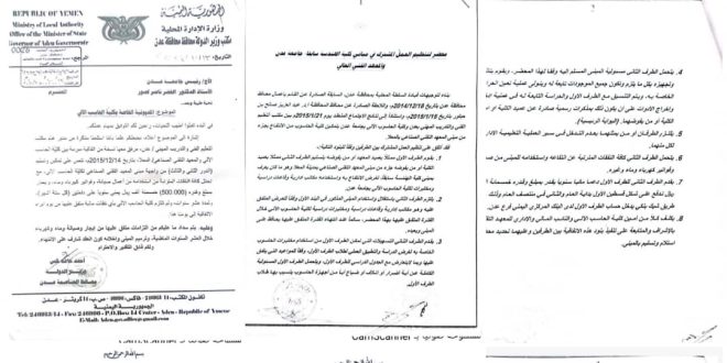 مذكرة مديرعام مكتب التعليم الفني والتدريب المهني عدن محمدسالم احمدالشكلية والتي تضمنت الغاء العقد وسداد ما على جامعة عدن من مديونية سابقة. .