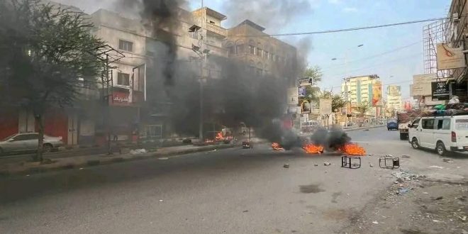 وقام المتظاهرون بقطع الشارع الرئيسي وإشعال إطارات، مرددين هتافات تطالب بإنقاذ المدينة من “العطش والجوع والانهيار”، في إشارة إلى ارتفاع أسعار المياه والغذاء نتيجة تدهور العملة.