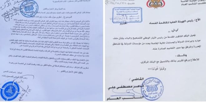التيار الوطني للتصحيح والبناء، أواخر العام الماضي توجه بشكوى إلى النائب العام ، القاضي قاهر مصطفى، حول هذا الملف المهم الذي يعد ثقبا اسودا لنهب المال العام في ظل شعب جائع بدون مرتبات ولا خدمات ..وكان النائب العام قد وجه مباشرة للهيئة العليا لمكافحة الفساد لإجراء تحقيق في الموضوع ، وعلى مدى شهرين تابعنا مع الهيئة العليا لمكافحة الفساد حتى تم إنجاز التحقيق وإعداد التقرير، الذي تم إرساله بداية شهر رمضان الفائت إلى مكتب النائب العام ، لكن التقرير الذي كان يفترض أن يحال إلى النيابات المختصة والمحاكم ، اختفى في مكتب النائب العام ، ومنذ ذلك اليوم ونحن نتابع إحالة الملف إلى الجهات المختصة من أجل إصدار أحكام قضائية لوقف هذه الحسابات، وإعادة توريد المال العام للبنك المركزي لكن دون جدوى للاسف.