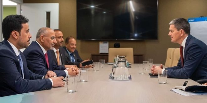 التقى عضو مجلس القيادة الرئاسي، اللواء عيدروس قاسم الزُبيدي، بالسيد ديفيد مليباند، رئيس لجنة الإنقاذ الدولية (IRC)، وذلك على هامش مشاركته في أعمال الدورة الـ80 للجمعية العامة للأمم المتحدة.