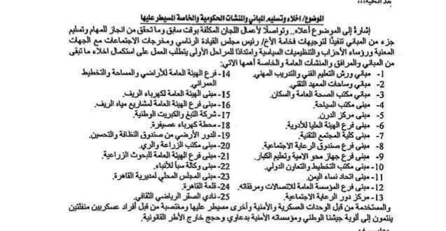 وشددت المذكرة على ضرورة المباشرة الفورية بالإجراءات اللازمة للإخلاء بالتنسيق مع الحملة الأمنية، وإعادة المباني إلى الجهات الرسمية أو الأشخاص المعنيين بها، بما يضمن إعادة تفعيلها واستخدامها في الأغراض والوظائف التي أنشئت من أجلها خدمةً للصالح العام، مطالبةً بسرعة موافاتها بالنتائج.