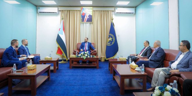 التقى الأستاذ عبد الرحمن جلال شاهر، الأمين العام للأمانة العامة لهيئة رئاسة المجلس الانتقالي، اليوم الأحد، في العاصمة عدن، وفد المعهد الأوروبي للسلام ممثلًا بالمستشارين الإقليميين السيد ثانوس بتوريس، والسيد لوكا نيفولا، لبحث سُبُل تعزيز جهود تحقيق السلام في المنطقة.