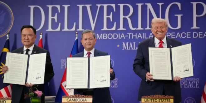 وقال ترامب إن “الأمر تطلب 32 عاما ليتوقف القتال بين تايلند وكمبوديا”، وأضاف أن “اتفاق السلام بين البلدين سينقذ أرواح الملايين”.