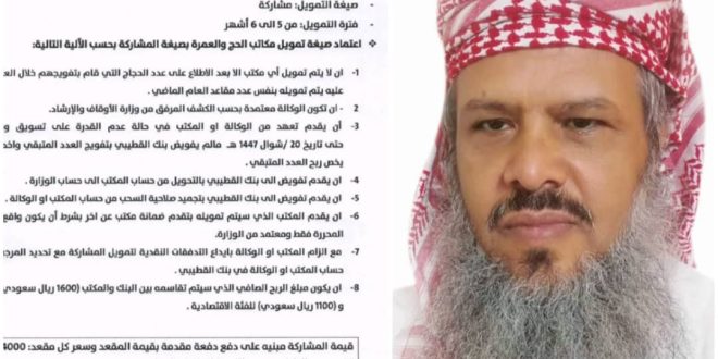 جدد مستشار وزارة الأوقاف والإرشاد الشيخ محمد الوقشي تحذيره المواطنين اليمنيين من التسجيل لدى الوكالات المعتمدة لموسم الحج 1447هـ حتى يتم فسخ العقد بين الوكالات وبين بنك القطيبي، أو تعديله بما يوافق الشريعة الإسلامية.