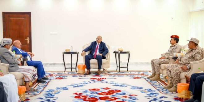 واستعرض اللقاء الجهود التي تبذلها قواتنا المسلحة لترسيخ الأمن ومكافحة الإرهاب، والتصدي لشبكات تهريب الأسلحة إلى مليشيا الحوثي الإرهابية، واخرها المهام التي نفذتها لتأمين مناطق وادي وصحراء حضرموت ومحافظة المهرة للقضاء على بؤر الإرهاب فيها وقطع خطوط التهريب التي مثلت شريان رئيسي لإمداد المليشيات الحوثية بالأسلحة والمخدرات.